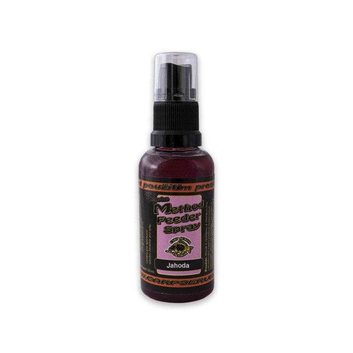 Slouží k rychlému a intenzivnímu zatraktivnění nejen method feederových báboviček, přímo na montáži. Vzhledem k extrémní atraktivitě, stačí aplikovat jen malé množství (1-4x). Method Feeder Spray má dvojí efektivní atrakční účinek. Prvním je intenzivní pachová stopa a druhou neméně účinnou funkcí je barvící stopa neboli mrakování. Z aplikovaného prostředku se uvolňuje efektivní barevný mrak, který ryby přirozeně láká na dálku. Tento mrak je tím intenzivnější, čím je odstín spreje tmavší.