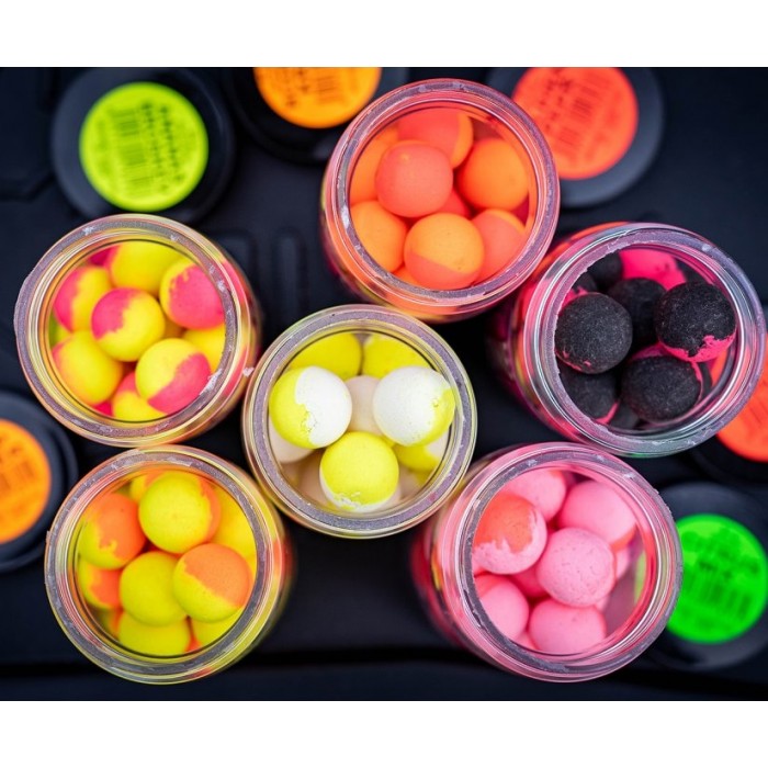 Každé balení obsahuje dvoubarevné, extrémně plovoucí boilies, které doporučujeme používat především na montáže Ronnie Rig, Chod rig, ale taky na panáčka.