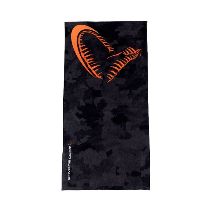 Multifunkční pokrývka hlavy ve stylovém černém camo designu s logem SG (čelisti), která může sloužit jako čepice, šátek, čelenka a maska.