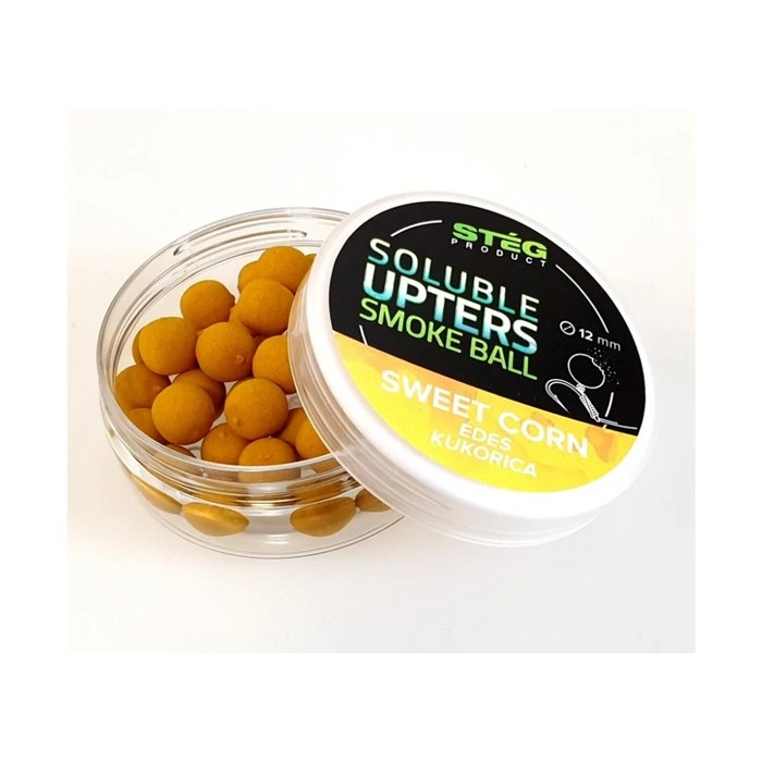 Soluble Upters Smoke Ball 8-10mm – 30g – Sweet Corn je rozpustná, neutrálně vyvážená nástraha od značky STÉG, která využívá osvědčenou a rybáři oblíbenou sladkou kukuřičnou příchuť. Ta je pro kapry i amury přirozeným zdrojem potravy a dokáže spolehlivě fungovat na všech typech vod.
