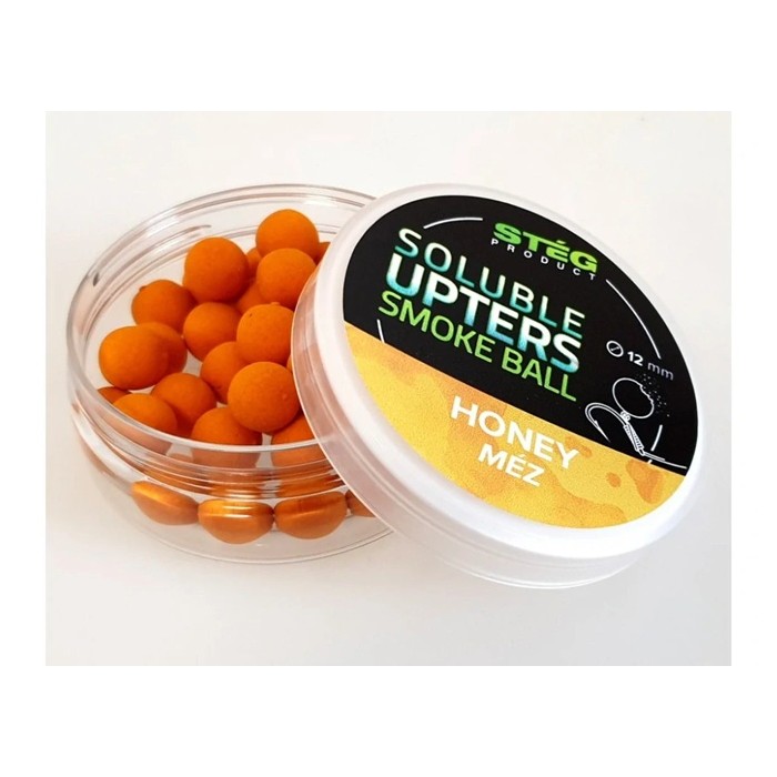 Soluble Upters Smoke Ball 8-10mm – 30g – Honey je rozpustná, neutrálně vyvážená nástraha od značky STÉG, která využívá osvědčenou a rybáři oblíbenou sladkou medovou příchuť. Ta je pro kapry i amury přirozeným zdrojem potravy a dokáže spolehlivě fungovat na všech typech vod.