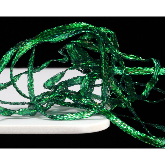Pletená stuha s iridiscentním leskem.