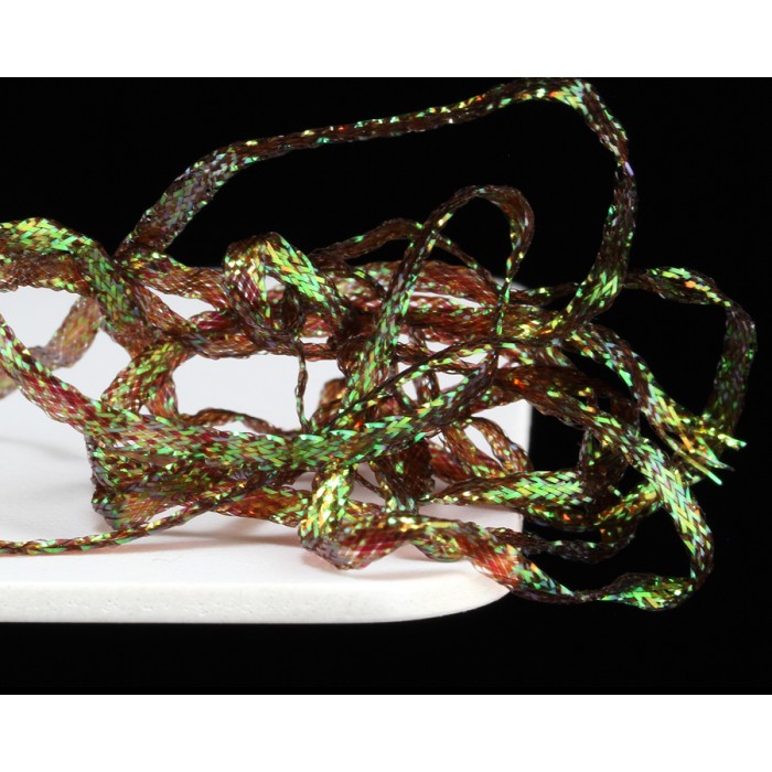 Pletená stuha s iridiscentním leskem.