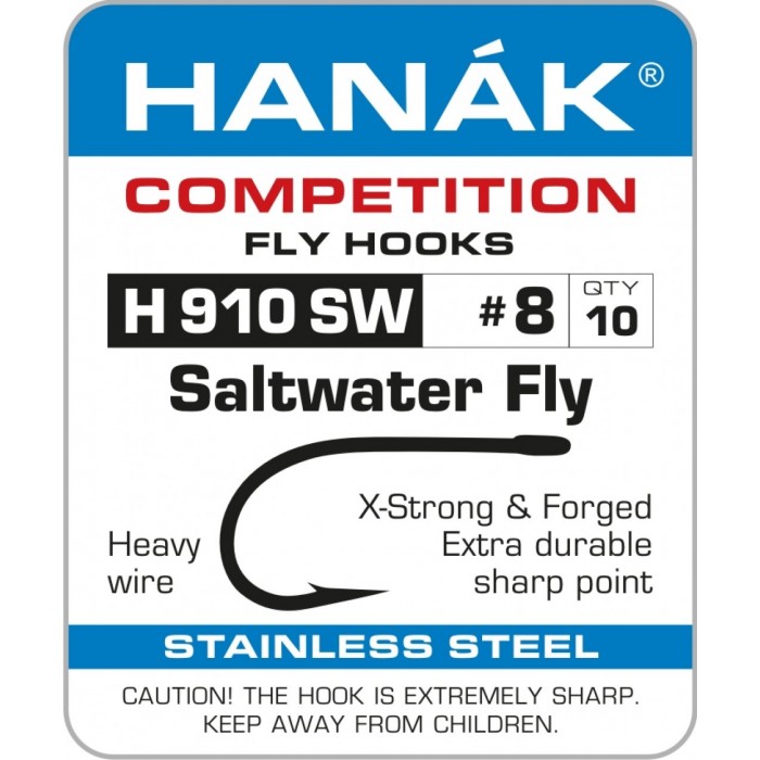 Zesílený muškařský háček s rovným očkem z nerezavějící oceli vhodný do slané