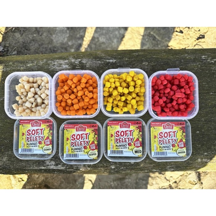 Tato měkká plovoucí nástraha potěší zejména příznivce lovu na feeder, ale také rybáře lovící například na klasickou položenou s krmítkem. Tyto měkčené pelety se díky své "soft" konzistenci snadno napíchují přímo na háček ale i pod něj, vydrží bez větších problémů půl hodiny. Díky své schopnosti plavat se skvěle vznáší přímo nad krmítkem a ryba je snadno najde. Nabízíme je v atraktivních a velmi agresivních příchutích pro maximální efektivitu při lovu ve všech ročních obdobích.