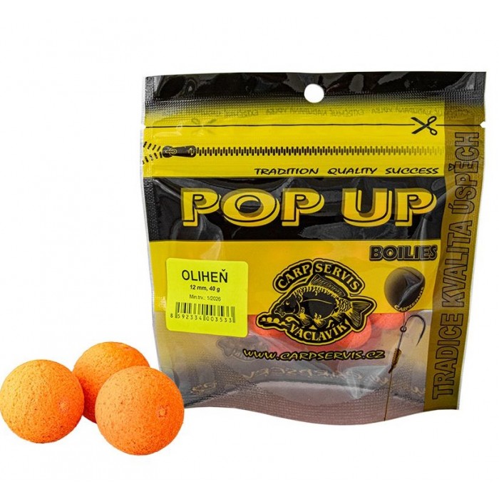 Plovoucí boilies Pop Ups Carp Servis kopírují svými variantami klasické boilies v nabídce firmy Carp Servis Václavík. Předností je bezesporu značná stabilita vztlaku, a to i po více než 12 hodinách nastražení ve vodě. Je možné je snadno dodatečně dipovat v tekutých dipech. Funguje až do zámrzu.