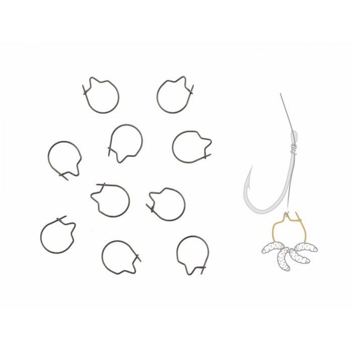 Skvělá pomůcka pro atraktivní a efektivní prezentaci červů na vlasu pod háčkem. Díky antireflexní povrchové úpravě zůstávají klipy nenápadné. Jejich ostrý a tenký drát zajišťuje, že červi nebudou při navlékání poškozeni. Tento klip perfektně drží nástrahu a zároveň ji prezentuje v přirozené pozici.
