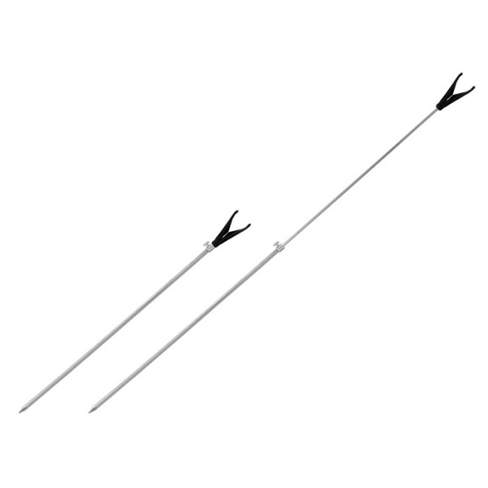 Velmi pevná, teleskopická, přední vidlička s držákem na prut. Vyrobena je z oceli, díky čemuž je výjimečně pevná. Vrchní část vidličky je pevně osazena držákem prutu. Požadovanou výšku nastavíte jednoduše pomocí závitu s maticí, která slouží k zafixování výšky rybářské vidličky.
